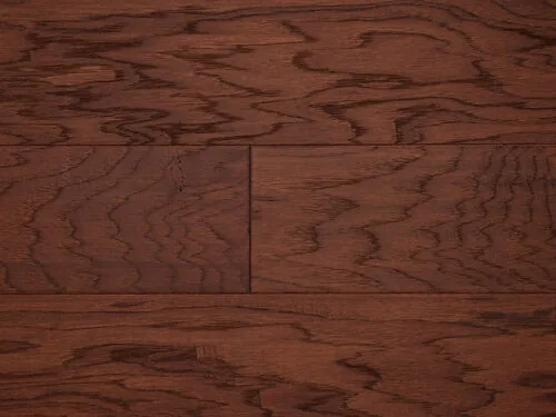 (647) 428-1111This engineered hardwood flooring from NAF features 6 1/2" wide hickory planks in the rich Meyerside color with handscraped and distressed finishing. At 3/4" thick, this genuine hickory engineered hardwood showcases natural grain patterns and rustic character that adds warmth to any space. The handscraped texture provides depth and visual interest while helping to conceal everyday wear and scratches.