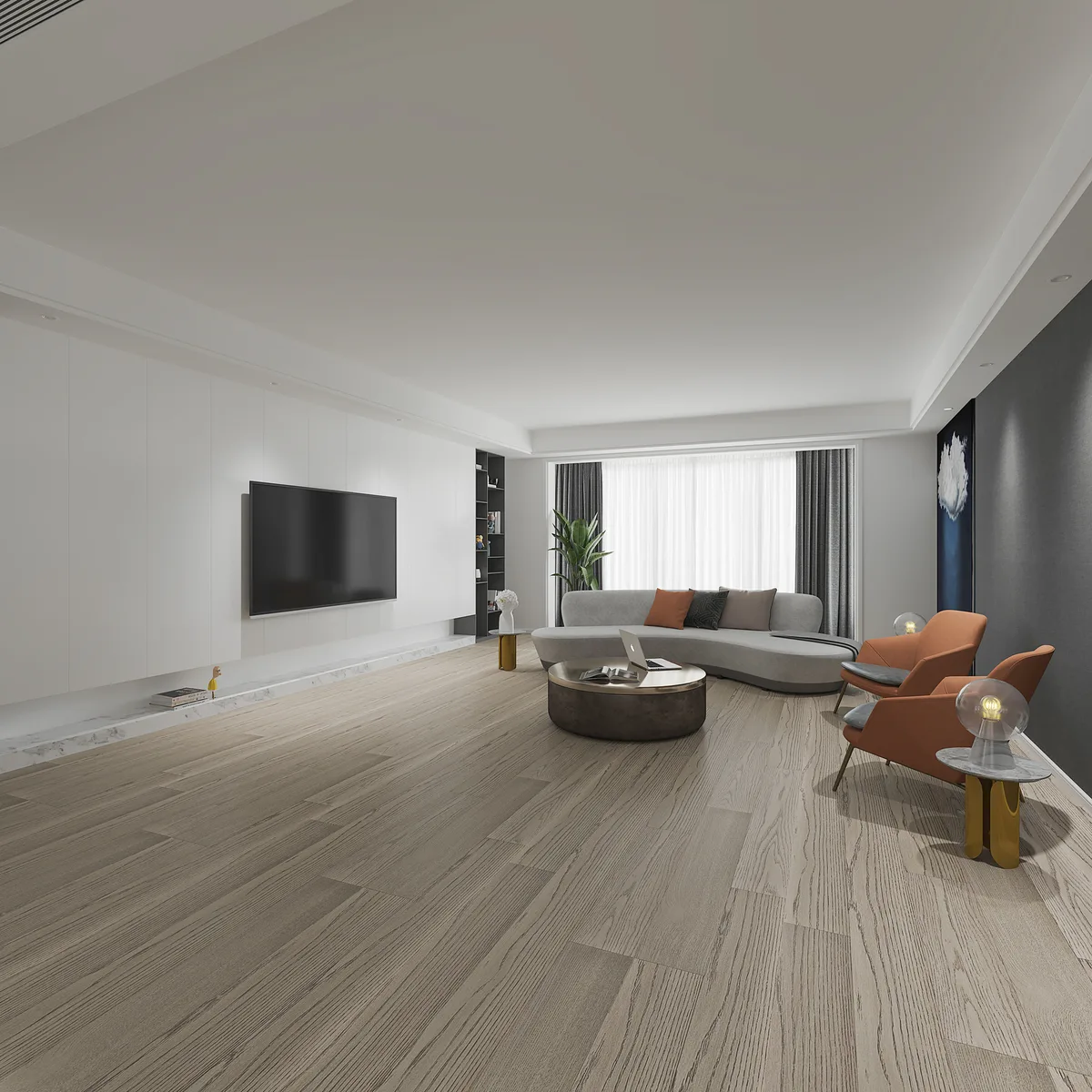 (647) 428-1111This engineered hardwood flooring from Woden Flooring features 6-1/2" wide white oak planks in the distinctive Timberwolf finish with expert wirebrushed texturing. At 3/4" thick, this premium white oak engineered flooring delivers exceptional dimensional stability while showcasing authentic hardwood character through enhanced grain patterns. Each box covers 20.5 square feet of random length planks that bring natural beauty to any interior design style.